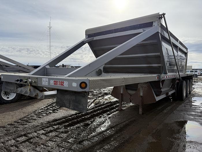 Options: · Manual gate stops · Flip away gate stops, electric over air · Mesh flip tarp, manual crank · Electric & manual air ride dump · Electric & manual gate controls · Osculating rubber bushed king pin plate · Push block · Front axle deflector shield · Gate closes under load · Aluminum fenders front and rear · 2x6 sideboards